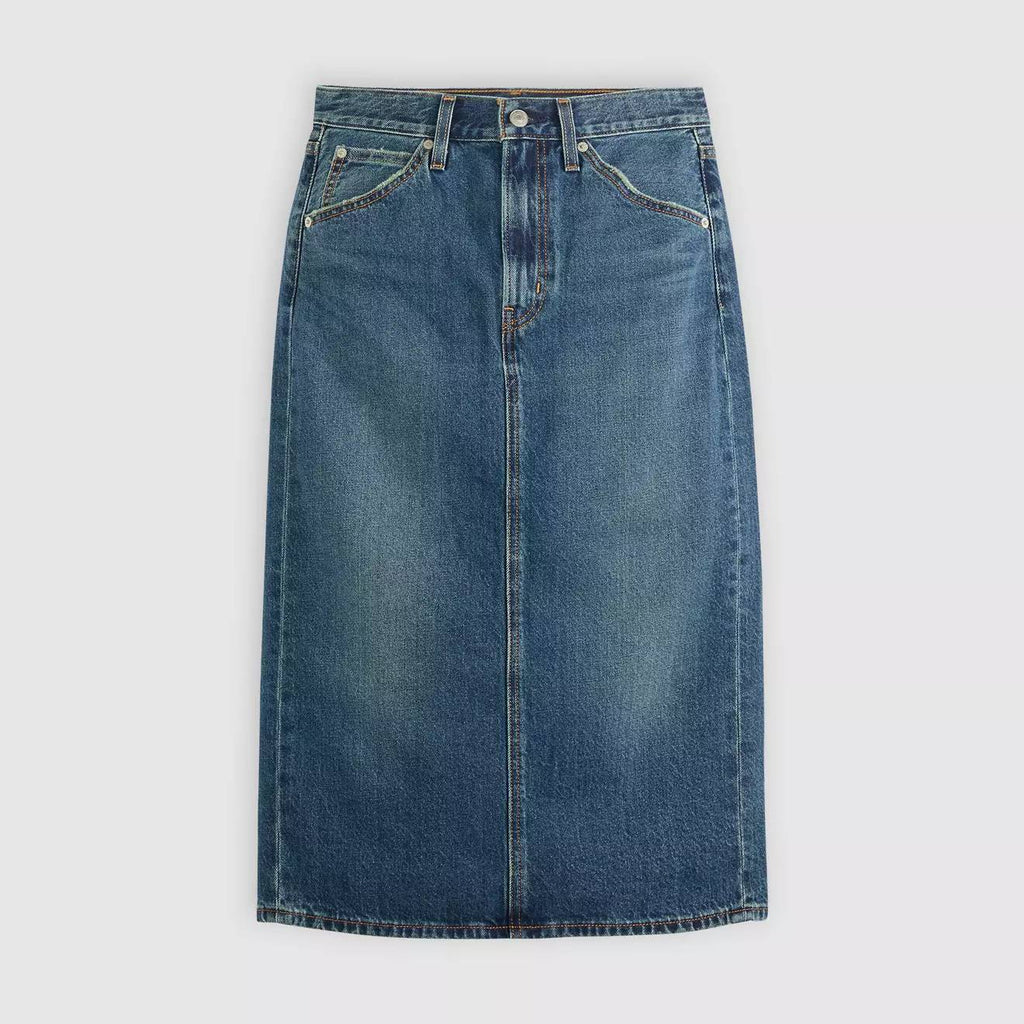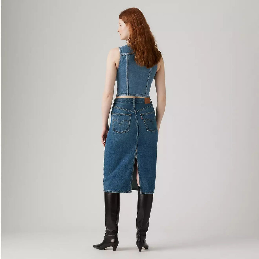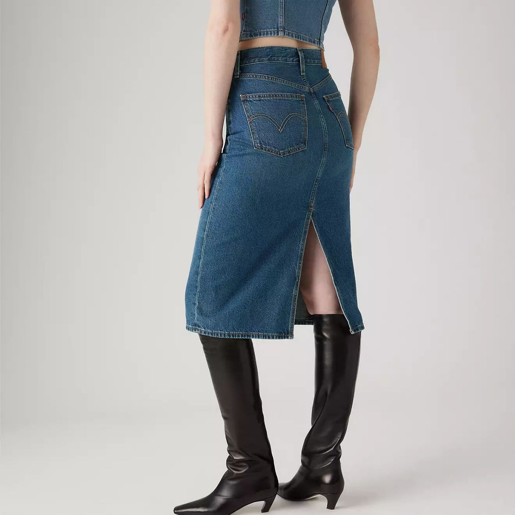 Una gonna di ispirazione vintage, ma senza la caccia. La nostra gonna a vita alta con spacco posteriore presenta un punto vita che sottolinea la vita, uno spacco posteriore e una vestibilità aderente e lusinghiera.
