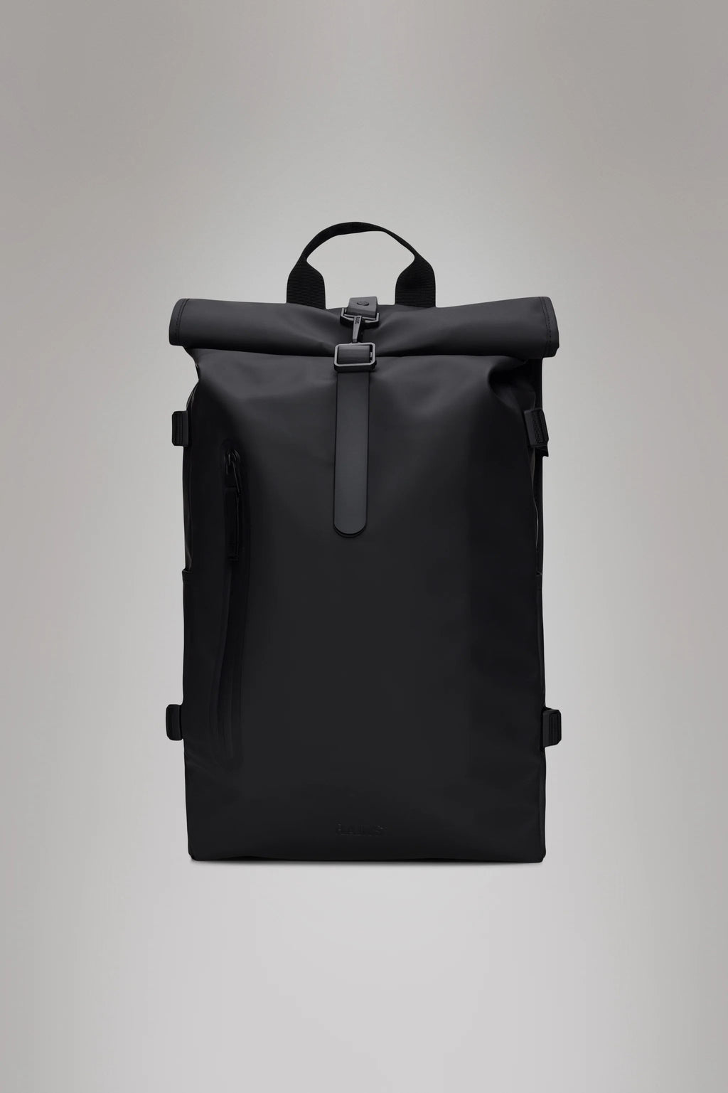 Il Rolltop Rucksack Large è un accessorio indispensabile per la città. Il modello si ispira allo zaino rolltop più iconico di Rains, rivisitato con proporzioni più grandi e con funzionalità aggiuntive. Il Rolltop Rucksack Large è progettato con cura per bloccare la pioggia durante gli spostamenti all'aperto. Per proteggere gli oggetti essenziali dalla pioggia, la parte superiore si arrotola e si fissa con l'iconico moschettone. L'apertura dello zaino rivela un ampio scomparto principale. Le caratteristiche esterne includono una tasca per laptop con accesso laterale, una tasca frontale con cerniera rivestita e due tasche laterali a scomparsa. Le caratteristiche pensate per i ciclisti includono un anello a D anteriore, ideale per tenere i lucchetti della bici, e una cinghia pettorale con fibbia, per una vestibilità sicura a prova di pedalata. Il Rolltop Rucksack Large è realizzato nell'iconico tessuto PU impermeabile di Rains, progettato per essere robusto, duraturo e piacevole al tatto.