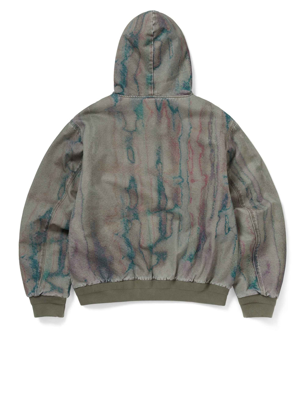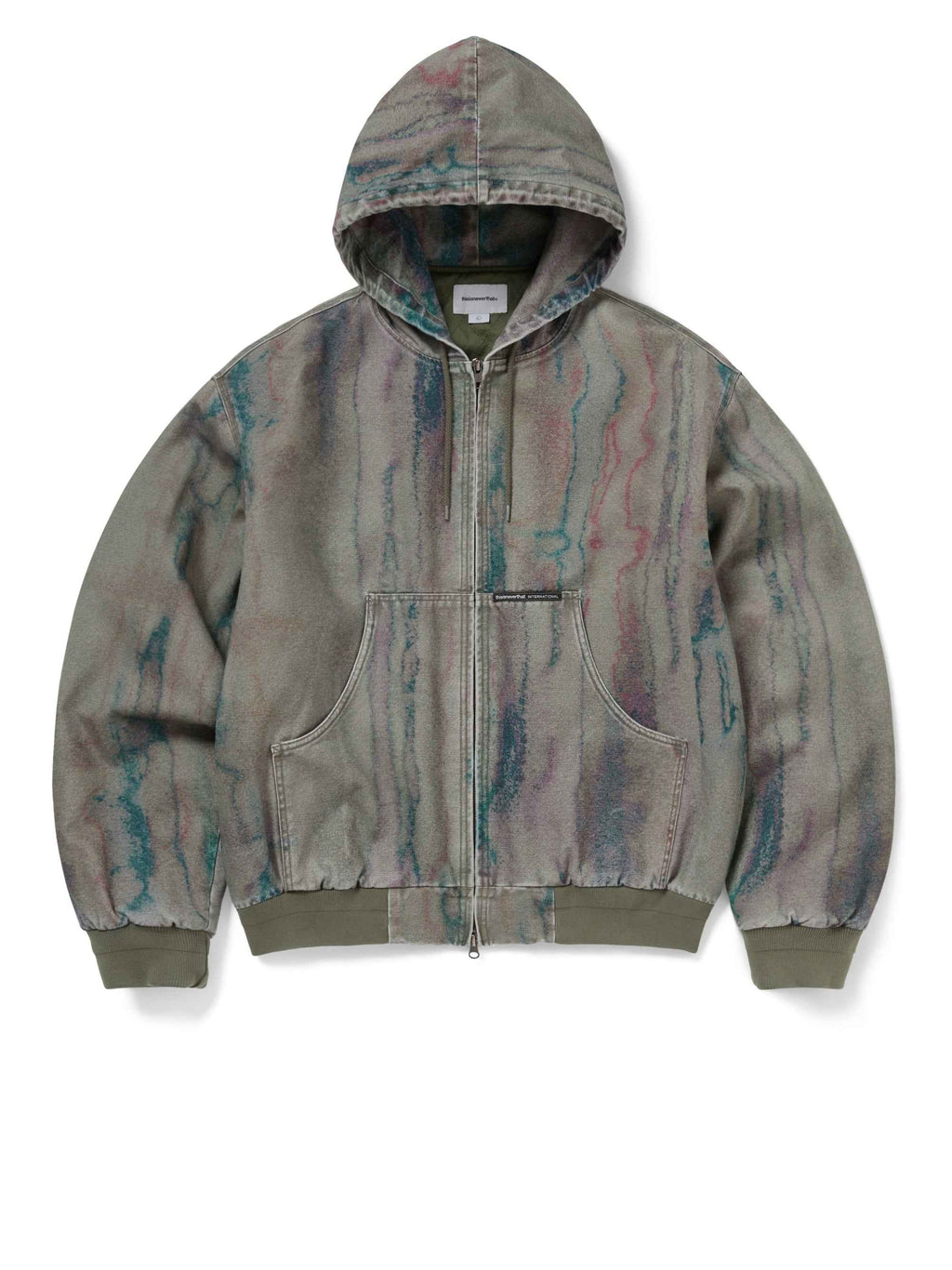 La Blurred Hooded Jacket combina funzionalità e stile sperimentale in una silhouette dal taglio relaxed. Realizzata in tessuto con stampa digitale all-over, è lavata con processo bio stone-wash per un effetto vissuto e unico su ogni capo. L’imbottitura da 3oz in poliestere garantisce comfort termico leggero, mentre la chiusura a doppio cursore YKK #5 e il cappuccio regolabile con coulisse aggiungono praticità e adattabilità. Completano il design i polsini e l’orlo a costine, la tasca interna applicata e l’etichetta con logo sul fronte.