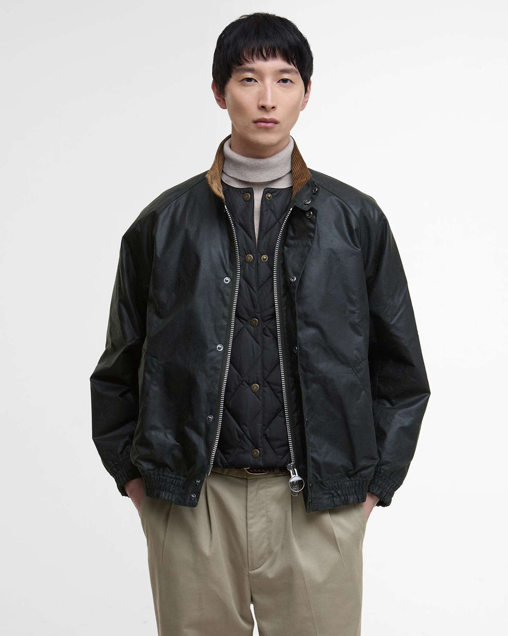 Ispirata al modello Transport, la moderna giacca cerata Blouson Transport firmata Barbour è pensata apposta per le avventure in città e in campagna.