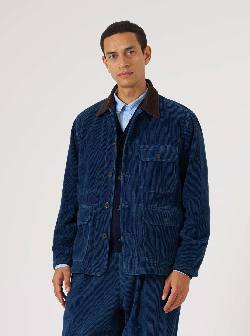 Un velluto a coste a 8 coste in 100% cotone riciclato. Scelto per il suo aspetto denim indaco lavato. Questo capo è tinto indaco. Prestare attenzione poiché potrebbe verificarsi un trasferimento di colore se indossato vicino a capi e mobili di colore più chiaro. Come i vostri jeans preferiti, questo capo sbiadirà gradualmente con l'uso. Lavare separatamente.